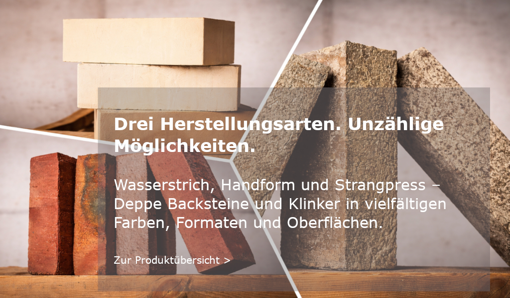 Die Ziegelei Deppe bietet Klinker, Verblender und Mauersteine für ästhetische Fassaden im Objektbereich und im Eigenheimbau. Wir stellen sowohl Handform- als auch Wasserstrich und Strangpress-Klinker her und produzieren optimal an Ihre Bedürfnisse angepasste Formsteine und Riemchen. Mit 138 Jahren und fünf Generationen Erfahrung liefern wir maßgeschneiderte Lösungen für Architekten und Bauherren in den verschiedensten Backstein-Farben, -oberflächen und -formaten.